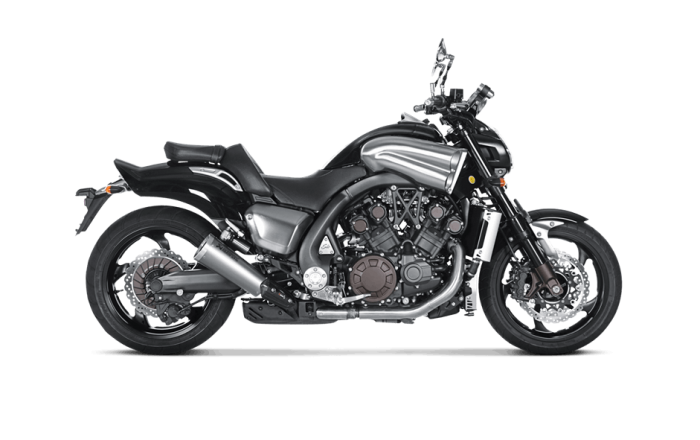 Slip-Ons represent the first step in the exhaust system tuning process, and they offer a great balance between price and performance. Sporty and lightweight Slip-On Line exhaust systems are a perfect match. Titanium mufflers with CNC machined aluminum end caps, fit the exterior line of the V-MAX perfectly and add a clean powerful image. In addition to design effects and improved power delivery, Slip-Ons also enhance the sound. Let your bike stand out with more power, beautiful design, and the unique Akrapovič sound of Slip-Ons. Installation is a snap.